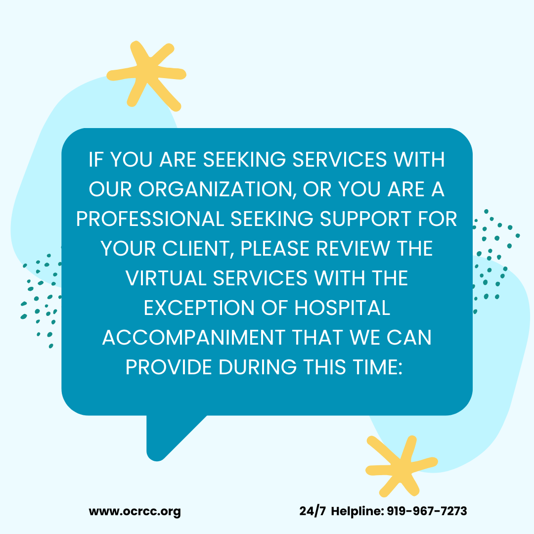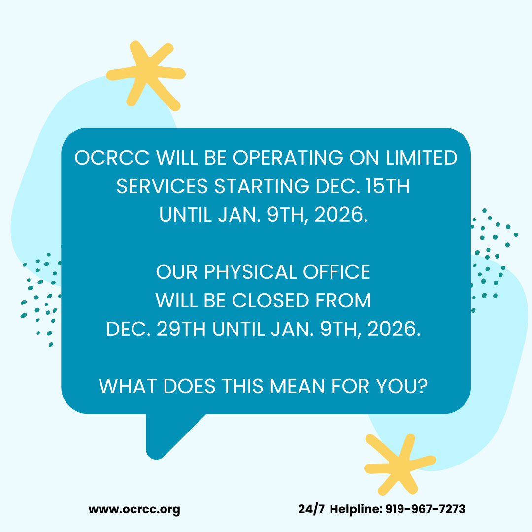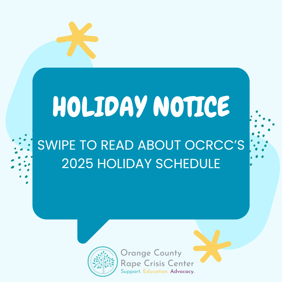 The Orange County Rape Crisis Center wishes to center the voices of people who have been marginalized, promote racial equality and health equality and to continue to best serve survivors. OCRCC will conduct an information gathering project focusing on Black survivors of sexual violence of all genders. We wish to partner with our community to find out what works, what does not, and what we should offer as support. We will do a series of information gatherings, in the form of interviews, virtual focus groups, an anonymous survey and other means, to collect narratives from the Black community. If you’re interested in participating in one or more ways, please click the link below. ALL IDENTIFYING INFORMATION IS KEPT CONFIDENTIAL.