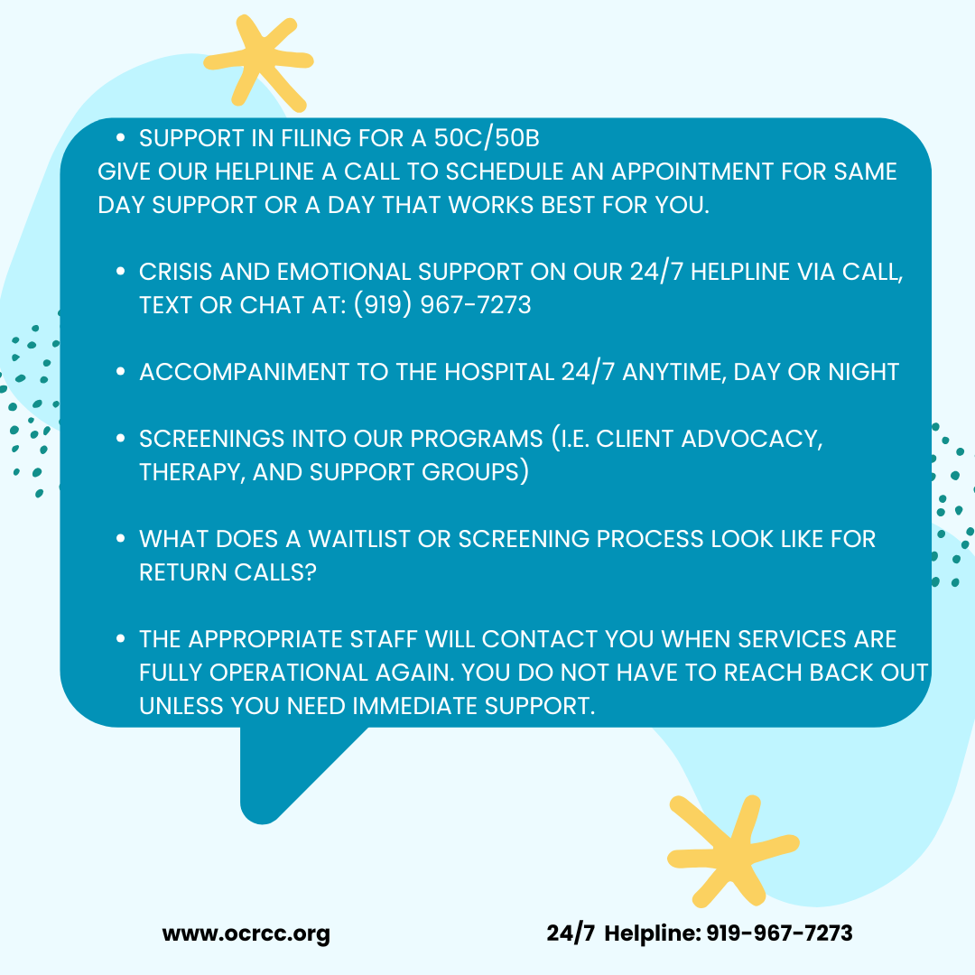 24-Hour Helplines: Phone: (919) 967-7273 Text: (919) 967-7273