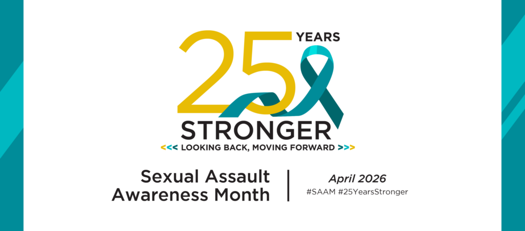 The theme for Sexual Assault Awareness Month 2026 is “25 Years Stronger: Looking Back, Moving Forward“. For 25 years, Sexual Assault Awareness Month (SAAM) has united survivors, advocates, and communities in the shared commitment to end sexual assault, abuse, and harassment. This milestone is both a celebration of progress and a call to keep moving forward.